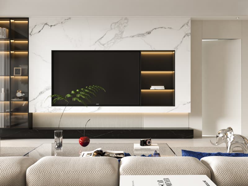 海創(chuàng)頂墻門柜,以全屋一體化設(shè)計(jì),打破空間界限。從頂面到墻面,從門到柜,全案落地,省心省力。一室之內(nèi),新中式的雅致與意式極簡的利落從容切換,盡顯品位與格調(diào)。開放式客餐廳:動(dòng)靜之間,風(fēng)格交融客廳新中式:長條電視背景墻,上下鏤空半懸浮造型,山水3D打印畫襯底,黑白碰撞間,電視完美嵌入定制柜,大氣雅致。沙發(fā)背景:打印畫與格柵小面積穿插,精致點(diǎn)綴,提升空間層次感。餐廳意式極簡:島臺(tái)式設(shè)計(jì)搭配通頂餐邊柜,墻柜一體,用餐體驗(yàn)更顯流暢高級。開放式廚房:轉(zhuǎn)角布局,磁吸軌道+無主燈設(shè)計(jì),簡約利落,動(dòng)線自如。私享空間:各具特色,舒適至上主臥:3D打印畫穿插做上下分割,奶白色調(diào)搭配光影燈帶,柔和敞亮,溫馨入眠。次臥:簡約新中床頭背景,一門到頂定制柜延伸為床頭柜,小空間也能舒適從容??头浚焊駯牌唇颖尘?,簡約不失創(chuàng)意,待客之道自有格調(diào)。休閑活動(dòng)室:靜音舒適,年味更濃過年邀友相聚,麻將聲聲,靜音設(shè)計(jì)加持,舒適又自在,歡聚時(shí)光更盡興。more +03月
