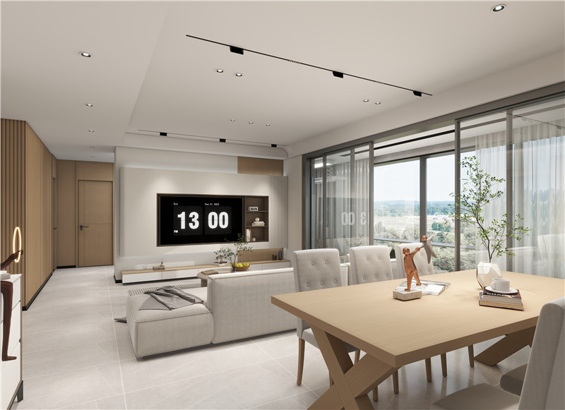 海創(chuàng)頂墻門柜,以全屋一體化設(shè)計(jì),打破空間界限。從頂面到墻面,從門到柜,全案落地,省心省力。一室之內(nèi),新中式的雅致與意式極簡(jiǎn)的利落從容切換,盡顯品位與格調(diào)。開放式客餐廳:動(dòng)靜之間,風(fēng)格交融客廳新中式:長(zhǎng)條電視背景墻,上下鏤空半懸浮造型,山水3D打印畫襯底,黑白碰撞間,電視完美嵌入定制柜,大氣雅致。沙發(fā)背景:打印畫與格柵小面積穿插,精致點(diǎn)綴,提升空間層次感。餐廳意式極簡(jiǎn):島臺(tái)式設(shè)計(jì)搭配通頂餐邊柜,墻柜一體,用餐體驗(yàn)更顯流暢高級(jí)。開放式廚房:轉(zhuǎn)角布局,磁吸軌道+無(wú)主燈設(shè)計(jì),簡(jiǎn)約利落,動(dòng)線自如。私享空間:各具特色,舒適至上主臥:3D打印畫穿插做上下分割,奶白色調(diào)搭配光影燈帶,柔和敞亮,溫馨入眠。次臥:簡(jiǎn)約新中床頭背景,一門到頂定制柜延伸為床頭柜,小空間也能舒適從容。客房:格柵拼接背景,簡(jiǎn)約不失創(chuàng)意,待客之道自有格調(diào)。休閑活動(dòng)室:靜音舒適,年味更濃過年邀友相聚,麻將聲聲,靜音設(shè)計(jì)加持,舒適又自在,歡聚時(shí)光更盡興。more +03月