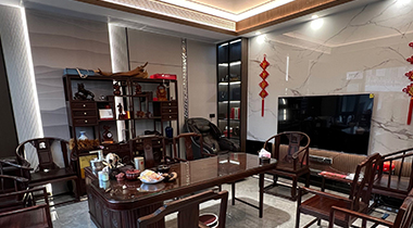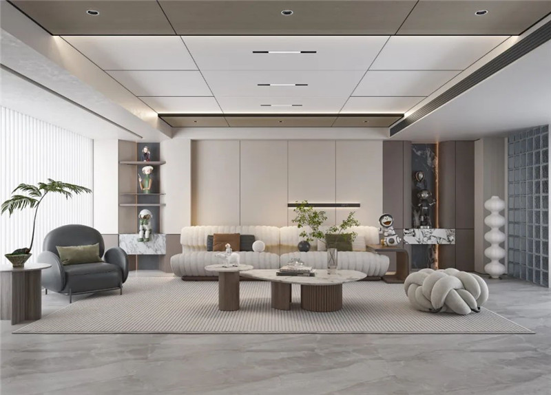 海創(chuàng)頂墻門柜,以全屋一體化設(shè)計,打破空間界限。從頂面到墻面,從門到柜,全案落地,省心省力。一室之內(nèi),新中式的雅致與意式極簡的利落從容切換,盡顯品位與格調(diào)。開放式客餐廳:動靜之間,風(fēng)格交融客廳新中式:長條電視背景墻,上下鏤空半懸浮造型,山水3D打印畫襯底,黑白碰撞間,電視完美嵌入定制柜,大氣雅致。沙發(fā)背景:打印畫與格柵小面積穿插,精致點綴,提升空間層次感。餐廳意式極簡:島臺式設(shè)計搭配通頂餐邊柜,墻柜一體,用餐體驗更顯流暢高級。開放式廚房:轉(zhuǎn)角布局,磁吸軌道+無主燈設(shè)計,簡約利落,動線自如。私享空間:各具特色,舒適至上主臥:3D打印畫穿插做上下分割,奶白色調(diào)搭配光影燈帶,柔和敞亮,溫馨入眠。次臥:簡約新中床頭背景,一門到頂定制柜延伸為床頭柜,小空間也能舒適從容??头浚焊駯牌唇颖尘?,簡約不失創(chuàng)意,待客之道自有格調(diào)。休閑活動室:靜音舒適,年味更濃過年邀友相聚,麻將聲聲,靜音設(shè)計加持,舒適又自在,歡聚時光更盡興。more +03月