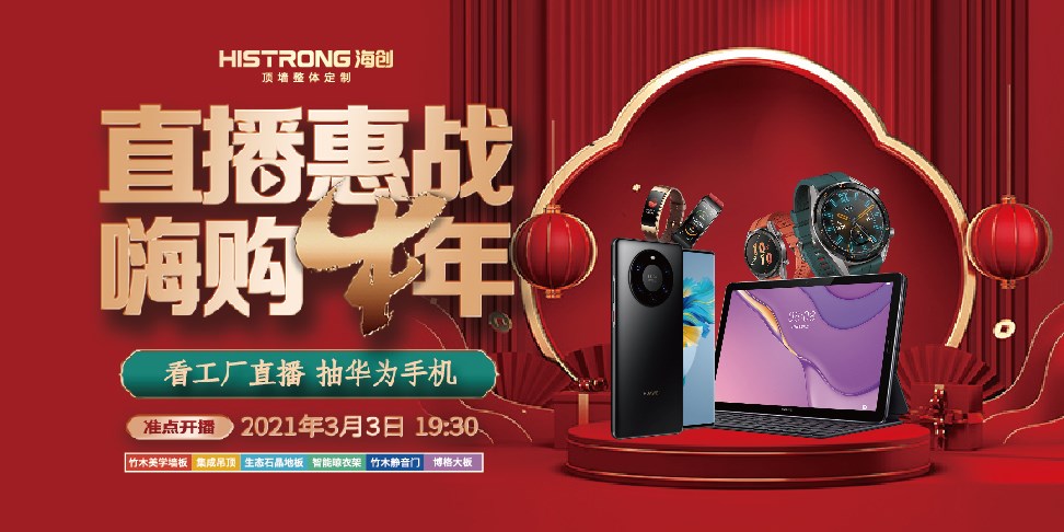 2021年2月22日,海創(chuàng)聯(lián)動(dòng)活動(dòng)將正式啟動(dòng)。海創(chuàng)全國(guó)百家專賣店,將齊心協(xié)力共同參與此次聯(lián)動(dòng)活動(dòng),2021牛來運(yùn)轉(zhuǎn),力爭(zhēng)上“?!?!作為2021新年首播,就在3月3日晚19:30,看直播,就可抽華為手機(jī)。此次“直播惠戰(zhàn) 嗨購牛年”活動(dòng),可謂誠(chéng)意滿滿,為所有支持和喜歡海創(chuàng)頂墻整體定制的業(yè)主朋友們送上超多福利優(yōu)惠,讓您輕松煥新家!本次直播聯(lián)動(dòng)活動(dòng),將帶領(lǐng)業(yè)主朋友們線上參觀海創(chuàng)最新展廳,當(dāng)下最受歡迎的風(fēng)格設(shè)計(jì),包含了新中式、美式、現(xiàn)代等不同風(fēng)格的空間,以及我們的竹木美學(xué)墻板、集成吊頂、博格大板、智能晾衣架、竹木靜音門、生態(tài)石晶地板等6大品類在全屋整裝中的運(yùn)用。當(dāng)然,大家最關(guān)心的優(yōu)惠福利是必不可少的!還有超多王牌產(chǎn)品及套餐都有實(shí)打?qū)嵉膬?yōu)惠,必能滿足大家的各種家裝需求。更多活動(dòng)詳情掃描下方二維碼進(jìn)入直播間了解。more+