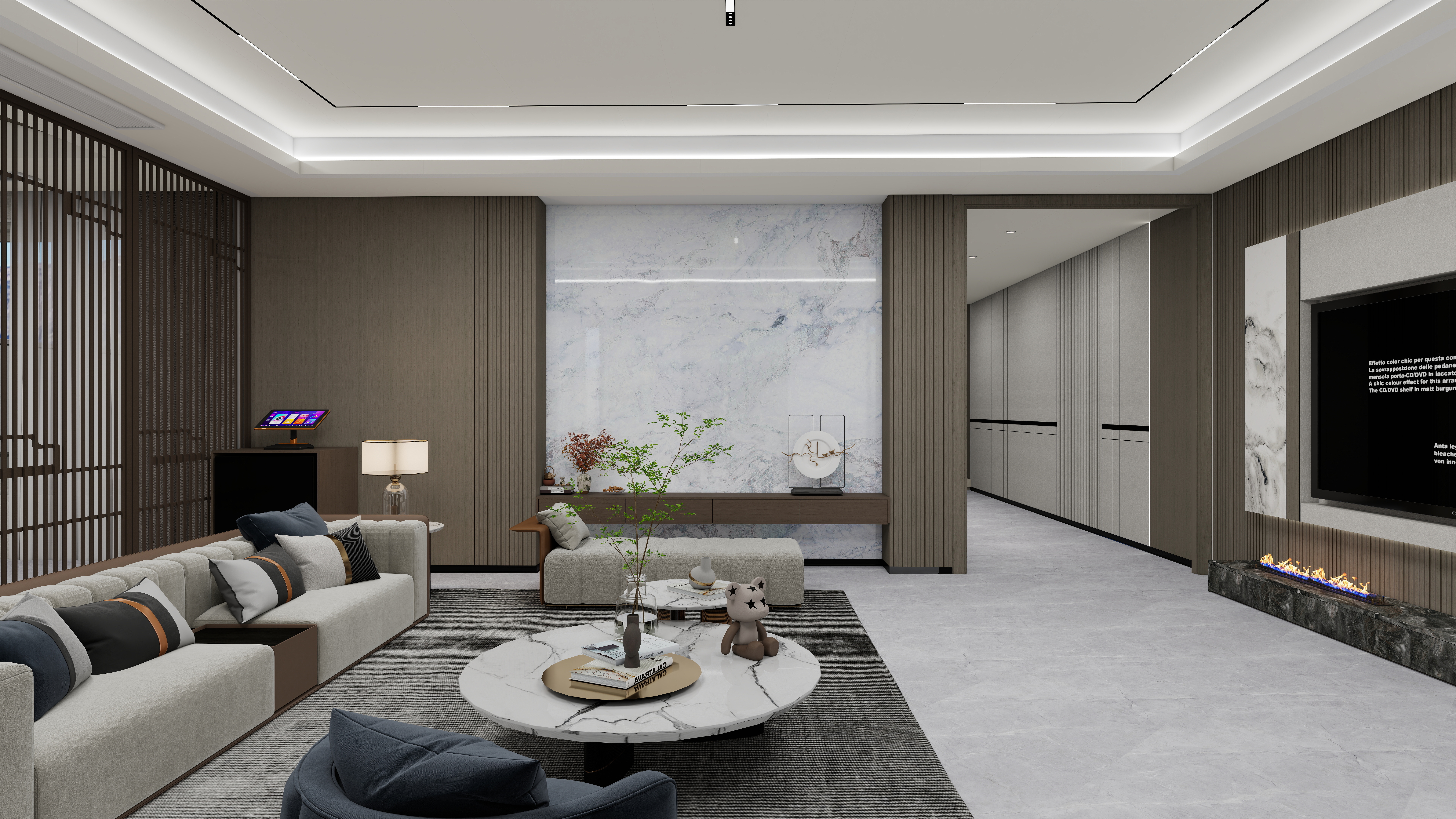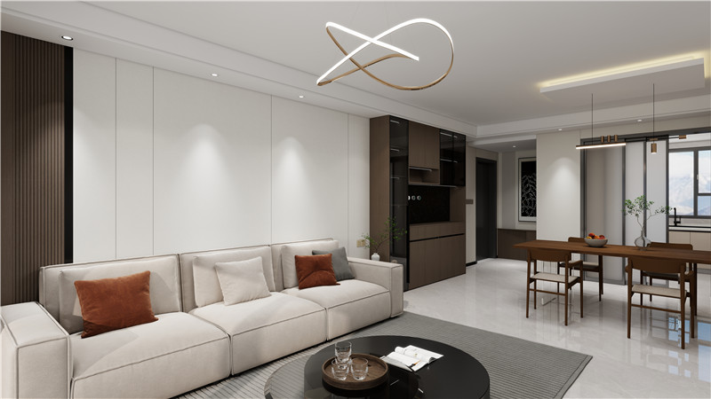新中式×意式極簡,剛?cè)岵睦硐爰摇?/p>海創(chuàng)頂墻門柜,以全屋一體化設(shè)計,打破空間界限。從頂面到墻面,從門到柜,全案落地,省心省力。一室之內(nèi),新中式的雅致與意式極簡的利落從容切換,盡顯品位與格調(diào)。開放式客餐廳:動靜之間,風格交融客廳新中式:長條電視背景墻,上下鏤空半懸浮造型,山水3D打印畫襯底,黑白碰撞間,電視完美嵌入定制柜,大氣雅致。沙發(fā)背景:打印畫與格柵小面積穿插,精致點綴,提升空間層次感。餐廳意式極簡:島臺式設(shè)計搭配通頂餐邊柜,墻柜一體,用餐體驗更顯流暢高級。開放式廚房:轉(zhuǎn)角布局,磁吸軌道+無主燈設(shè)計,簡約利落,動線自如。私享空間:各具特色,舒適至上主臥:3D打印畫穿插做上下分割,奶白色調(diào)搭配光影燈帶,柔和敞亮,溫馨入眠。次臥:簡約新中床頭背景,一門到頂定制柜延伸為床頭柜,小空間也能舒適從容??头浚焊駯牌唇颖尘?,簡約不失創(chuàng)意,待客之道自有格調(diào)。休閑活動室:靜音舒適,年味更濃過年邀友相聚,麻將聲聲,靜音設(shè)計加持,舒適又自在,歡聚時光更盡興。more +