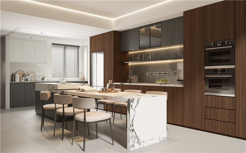意式輕奢,極簡(jiǎn)之境。120平別墅空間,海創(chuàng)頂墻門(mén)柜全屋定制,一體化開(kāi)放設(shè)計(jì),白棕色調(diào)溫柔鋪陳,一站式裝修從容落地。玄關(guān)·客廳:秩序與自在進(jìn)門(mén)簡(jiǎn)易玄關(guān)柜,立于電視背景一側(cè),不占面積,只增從容。電視與沙發(fā)背景相向而立,白棕對(duì)望,空間有了對(duì)話(huà)。9A木拼接背景墻,簡(jiǎn)潔中暗藏變化,紋理訴說(shuō)質(zhì)感。餐廚空間:方圓有度餐廚分布于內(nèi),圓桌與側(cè)邊方柜,一方一圓自成秩序。頂部方形燈帶勾勒,光線(xiàn)里藏著幾何美學(xué)。圍合式廚房布局,充實(shí)而精致。上吊柜、下地柜,冰箱完美內(nèi)嵌。側(cè)邊轉(zhuǎn)角開(kāi)放格設(shè)計(jì),空間整齊劃一,收納處處到位。主臥·次臥:靜謐與質(zhì)感主臥高級(jí)白灰設(shè)計(jì),墻柜同色,視覺(jué)延伸,質(zhì)感渾然天成。一門(mén)到頂定制衣柜,銜接梳妝柜,角落中開(kāi)辟女主人的精致天地。次臥靜謐雅致,墻柜組合極簡(jiǎn)演繹,少即是多,靜即是美。一站式優(yōu)勢(shì)總結(jié)頂、墻、門(mén)、柜全屋同配,風(fēng)格統(tǒng)一不拼湊。從設(shè)計(jì)到落地,一站式裝修省心省力。海創(chuàng)9A木,環(huán)保耐用,讓極簡(jiǎn)別墅既有顏值,更有品質(zhì)。海創(chuàng)頂墻門(mén)柜——你的家,本該如此從容高級(jí)。more +04月