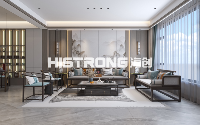 新中式×意式極簡,剛?cè)岵睦硐爰摇?/p>海創(chuàng)頂墻門柜,以全屋一體化設(shè)計,打破空間界限。從頂面到墻面,從門到柜,全案落地,省心省力。一室之內(nèi),新中式的雅致與意式極簡的利落從容切換,盡顯品位與格調(diào)。開放式客餐廳:動靜之間,風格交融客廳新中式:長條電視背景墻,上下鏤空半懸浮造型,山水3D打印畫襯底,黑白碰撞間,電視完美嵌入定制柜,大氣雅致。沙發(fā)背景:打印畫與格柵小面積穿插,精致點綴,提升空間層次感。餐廳意式極簡:島臺式設(shè)計搭配通頂餐邊柜,墻柜一體,用餐體驗更顯流暢高級。開放式廚房:轉(zhuǎn)角布局,磁吸軌道+無主燈設(shè)計,簡約利落,動線自如。私享空間:各具特色,舒適至上主臥:3D打印畫穿插做上下分割,奶白色調(diào)搭配光影燈帶,柔和敞亮,溫馨入眠。次臥:簡約新中床頭背景,一門到頂定制柜延伸為床頭柜,小空間也能舒適從容??头浚焊駯牌唇颖尘?,簡約不失創(chuàng)意,待客之道自有格調(diào)。休閑活動室:靜音舒適,年味更濃過年邀友相聚,麻將聲聲,靜音設(shè)計加持,舒適又自在,歡聚時光更盡興。more +