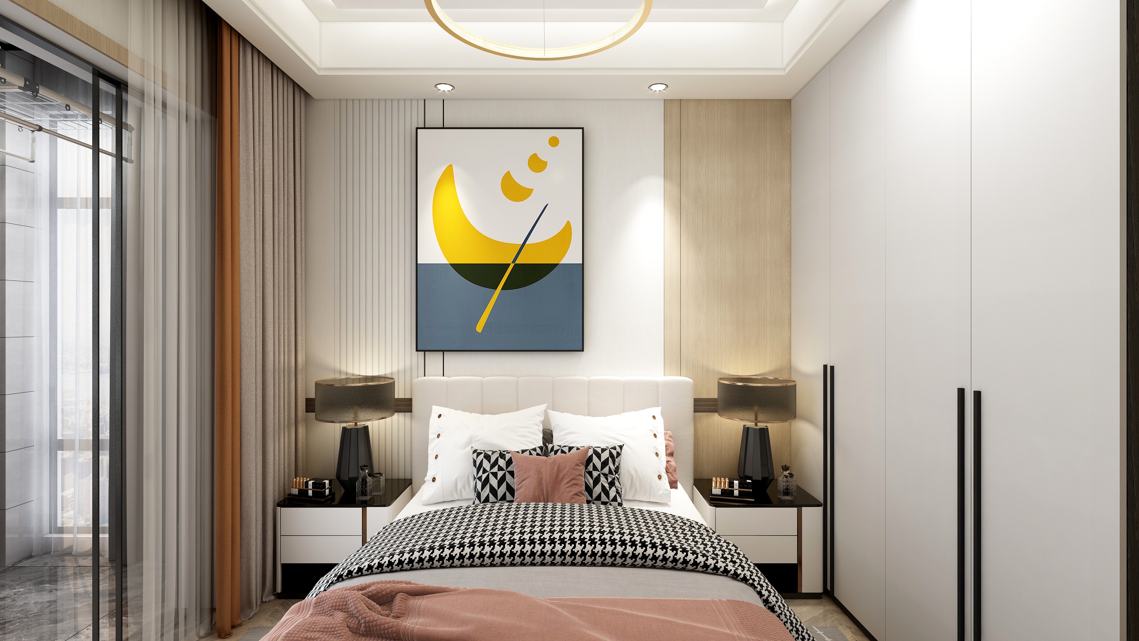 全屋定制,一站式交付從頂?shù)綁Γ瑥拈T到柜,一體化設(shè)計、一站式落地。省去對接煩惱,還原純粹意式美學(xué)。白棕為底,極簡為魂全屋以白、棕兩色鋪陳,干凈克制,溫潤有度。無主燈設(shè)計+博格鋁蜂窩大板吊頂,磁吸軌道燈勾勒線性光,頂部輕盈,空間釋放。餐廚讓渡,客廳做大簡易餐廚區(qū)壓縮功能,將更多面積還給客廳。電視背景與沙發(fā)背景模塊拼接,木紋與石紋交錯碰撞,質(zhì)感層層遞進,留白處皆是呼吸感。主臥半隔斷,動靜分明9A木健康墻板圍合睡眠區(qū),隔音降噪,安睡無擾。半隔斷劃分寫字區(qū)與休臥區(qū),工作與休息互不打擾,小空間也有大秩序。次臥墻柜一體,一黑一棕兩間次臥分別采用黑色與棕色墻柜一體設(shè)計,收納隱形,立面干凈。黑白間半懸浮床頭柜,輕盈不落地,細(xì)節(jié)處見巧思,時尚感別具一格。頂墻門柜,一步到位無需東奔西跑,一套方案貫穿全屋。海創(chuàng)定制,讓110㎡住出意式極簡的從容與高級。more +03月
