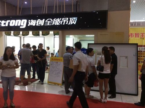 活動(dòng)現(xiàn)場不僅折扣力度空前,產(chǎn)品多樣,更有眾多好禮相送,各大品牌各出奇招,現(xiàn)場氣氛異常熱烈。海創(chuàng)太倉專賣店為此次活動(dòng)做了充分準(zhǔn)備,為展現(xiàn)出海創(chuàng)集成吊頂品牌此次活動(dòng)的誠意,海創(chuàng)公司推出了一系列暢銷產(chǎn)品,以出廠價(jià)直接讓利給消費(fèi)者,讓消費(fèi)者獲得實(shí)實(shí)在在的優(yōu)惠,贏得了消費(fèi)者們的青睞。活動(dòng)期間,由海創(chuàng)市場部部長親自為消費(fèi)者上臺講解集成吊頂產(chǎn)品知識,通過專業(yè)講解,消費(fèi)者對海創(chuàng)集成吊頂有了全面的認(rèn)識,更加肯定了海創(chuàng)的產(chǎn)品,現(xiàn)場紛紛下單購買。