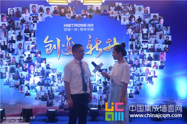 “創(chuàng)變 新升” -海創(chuàng)20周年盛典暨品牌戰(zhàn)略發(fā)布會在海寧市皮都錦江大酒店盛大召開,屆時,全國上百家經(jīng)銷商共赴盛宴,品鑒論道。在這個備受矚目的日子里,中國集成墻面網(wǎng)記者有幸采訪到了海創(chuàng)銷售部長高勤峰,以下是采訪實錄: