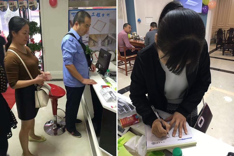 一場華麗的視覺體驗秀在店內(nèi)綻放,開業(yè)當天優(yōu)惠眾多,吸引不少客戶進店參觀選購。綠色環(huán)保、快捷裝修等優(yōu)點獲得客戶認同,當天立即成交3單,現(xiàn)場收取定金4.5萬。開業(yè)優(yōu)惠活動還將持續(xù)到10月28號,憑借這一良好勢頭,預(yù)祝海創(chuàng)頂墻一體永豐專賣店業(yè)績飆升,再創(chuàng)新高。