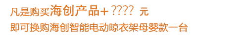 凡購(gòu)買海創(chuàng)產(chǎn)品+一定金額,即可換購(gòu)海創(chuàng)智能電動(dòng)晾衣架母嬰款一臺(tái)。