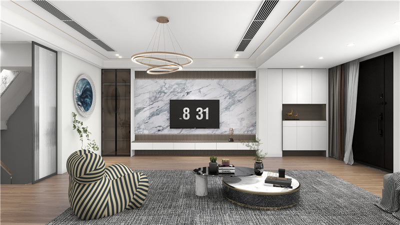當(dāng)背景墻旁邊是門的時(shí)候,門墻柜一體的設(shè)計(jì)往往能達(dá)到更統(tǒng)一的視覺效果。定制柜、背景墻和靜音門可以做到同色同材設(shè)計(jì),組合起來(lái)毫無(wú)違和感。