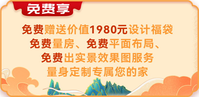 2、免費享:免費贈送價值1980元設(shè)計福袋,免費量房、免費平面布局、免費出實景效果圖服務(wù),量身定制專屬您的家