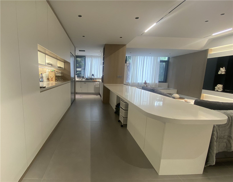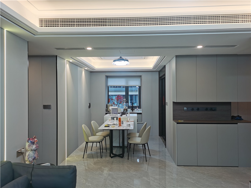 全屋定制,住得省心海創(chuàng)頂墻門柜一體化打造,220平大平層,清爽白為底,深棕與灰色小面積點綴。從毛坯到入住,設計、選材、施工一站統(tǒng)籌,不用東奔西跑,落地效果就是當初想要的樣子。玄關 · 進門就順了一門到頂?shù)男P柜,推開門視線干凈開闊。鑰匙、外套、鞋子各有歸處,每天出門回家,心里也跟著清爽起來??蛷d · 待著就不想走沙發(fā)背景與電視墻非對稱設計,一面是山水3D打印畫,一面是素面留白。無主燈,光影柔軟散落,坐哪都自在。朋友來家里,總說這地方待著舒服。餐廚 · 做飯也不孤單島式餐桌居中,備餐、吃飯、聊天自然連在一起。半開放式餐邊柜,常用的小電器順手拿取,臺面始終整潔。一家人在一塊兒的時間,比原來多了不少。主臥 · 一躺就放松無拉手定制柜與墻面融成一片,視線沒有多余線條。9A木墻板拼接的背景墻,溫潤的觸感,晚上燈一關,身心很快沉下來。收納夠用,空間干凈,睡眠自然安穩(wěn)。兒童房 · 成長有陪伴書桌緊鄰休息區(qū),寫作業(yè)、畫畫、發(fā)呆各得其所。柜子高度按孩子來設計,自己也能整理玩具??粗谧约旱男√斓乩锇察o長大,挺踏實的。書房 · 獨處有質(zhì)量一門到頂書柜,半開放加燈帶,找書順手,燈光柔和。書桌臨窗,窗外安靜,屋內(nèi)也安靜。無論是加班還是讀書,都能很快沉進去。海創(chuàng)頂墻門柜,拎包入住墻、頂、門、柜全案統(tǒng)籌,風格統(tǒng)一,交付即成品。極簡大平層,不只是好看,更是每天住著都順心。more +03月