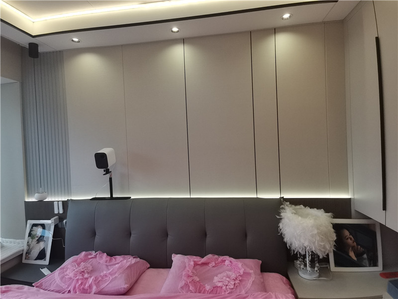 電視背景墻設(shè)計(jì)雖中規(guī)中矩,但和定制柜做配套以后卻瞬間變得立體起來,pet仿大理石紋材質(zhì)耐磨易清潔,即使家里有愛涂寫的好奇寶寶,也完全不用擔(dān)心。