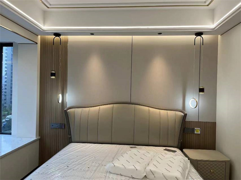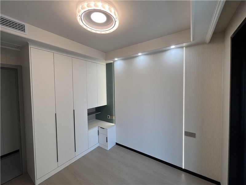 一抹清新的綠點(diǎn)綴,讓臥室空間有了目光的聚焦點(diǎn)。頂墻門柜的整體設(shè)計(jì)呈現(xiàn)得恰到好處。