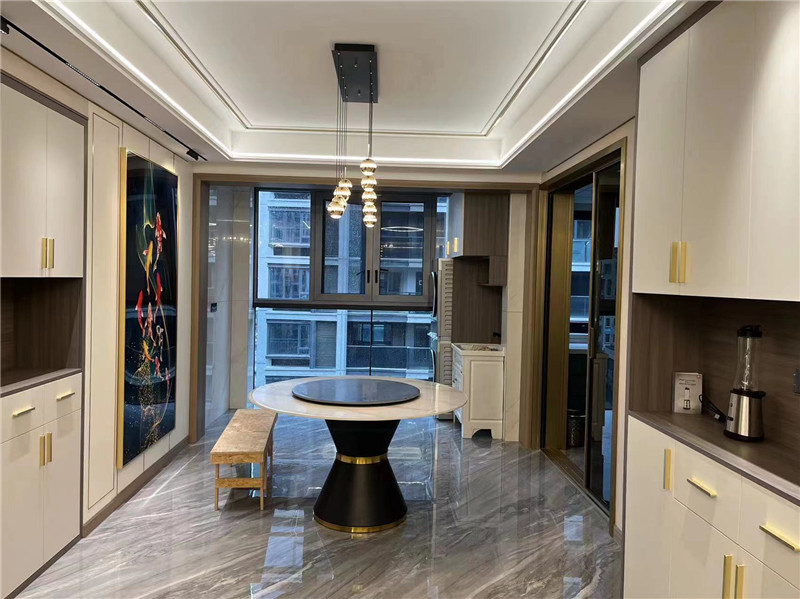 客餐廳空間除了收納功能外,必須得有藝術(shù)氣息,一幅大的藝術(shù)裝飾畫必不可少。