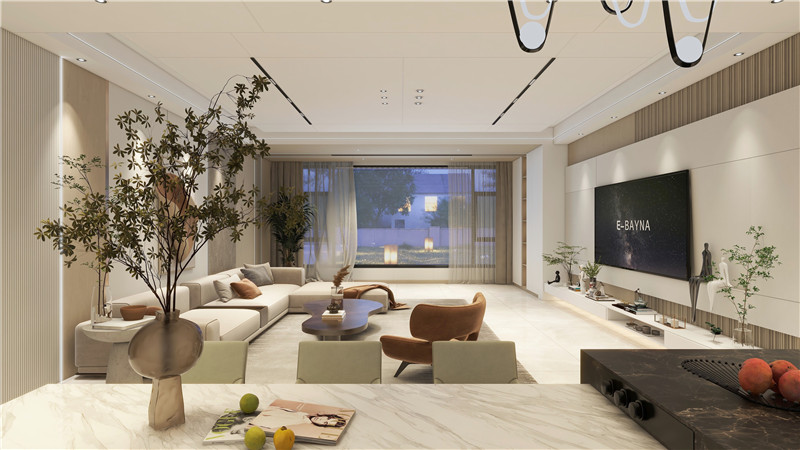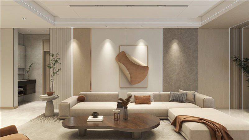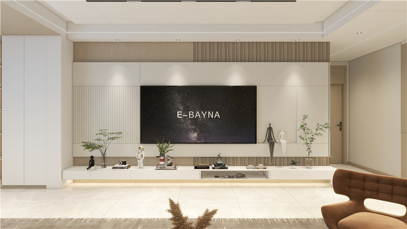 不同造型的多樣組合拼接和色調(diào)碰撞,讓微立體感躍然于墻面,同時,懸空電視柜和定制柜的無縫對接將空間的完整度拉滿,最大程度保留客戶心目中的大空間感。