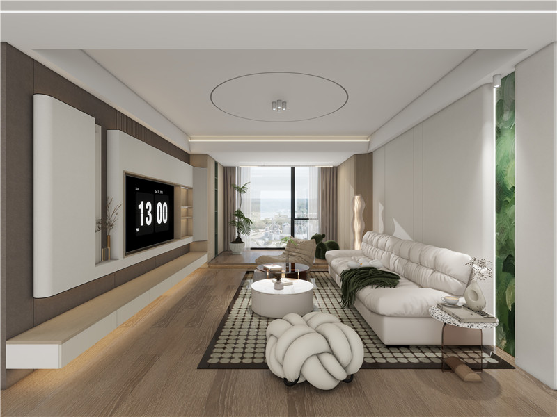 奶油風(fēng)通常以低飽和度的奶油色、米色、奶咖色等為主色調(diào),營(yíng)造出一種溫暖而治愈的氛圍。家具多選用帶有圓潤(rùn)線條的款式,如弧形沙發(fā)、圓形餐桌等,展現(xiàn)出一種柔和的美感。在材質(zhì)上,常使用木材、藤編、羊羔毛等,增加自然與質(zhì)樸的感覺(jué)。墻面可能會(huì)采用帶有肌理感的材質(zhì),如海格墻板,表面紋理質(zhì)感多樣,讓空間更有層次感。