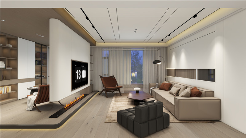 整屋以白色、暖灰色和原木色為主,溫馨的色彩和諧交融,點(diǎn)綴些許金色元素,部分空間以白色作為中間色搭配調(diào)和,帶有一絲復(fù)古韻味,整體空間呈現(xiàn)出休閑舒適、溫暖自愈的視覺(jué)效果。