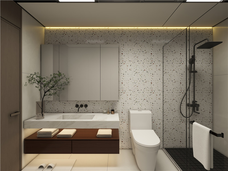 衛(wèi)生間同樣展現(xiàn)出簡(jiǎn)約時(shí)尚的魅力。博格鋁蜂窩大板的運(yùn)用,為空間增添了大氣與質(zhì)感;線(xiàn)性取暖器巧妙地融入其中,不僅在功能上為浴室提供了溫暖舒適的環(huán)境,其簡(jiǎn)約的設(shè)計(jì)與博格鋁蜂窩大板相互映襯,營(yíng)造出時(shí)尚而又實(shí)用的氛圍。
