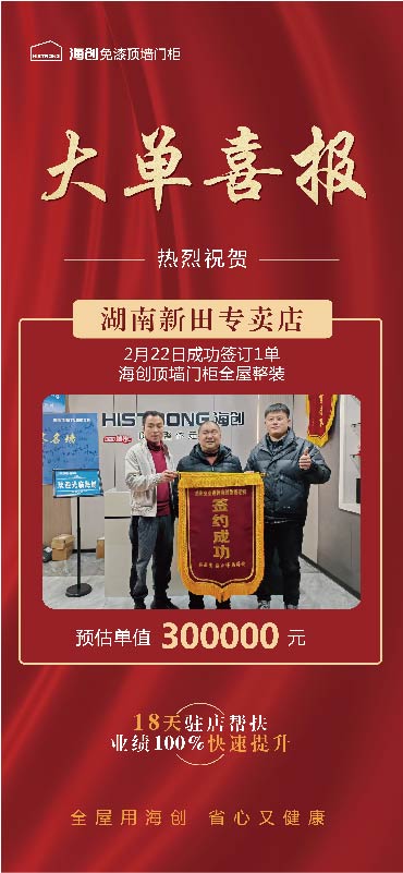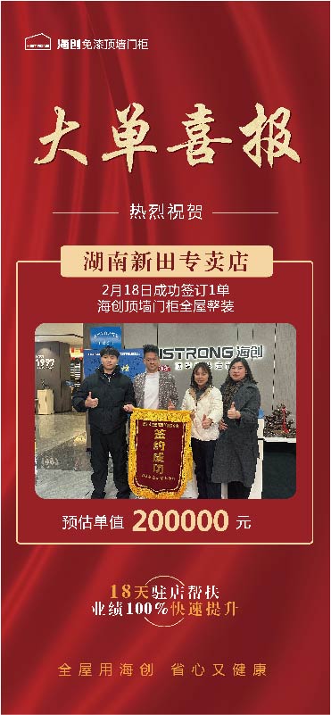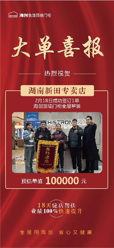 2月10日至27日,海創(chuàng)新田專賣(mài)店開(kāi)年第一場(chǎng)“搶頭彩——征集新春代言人樣板房”幫扶活動(dòng)圓滿結(jié)束,18天共簽全屋整裝4單,預(yù)估銷售額80萬(wàn)元。