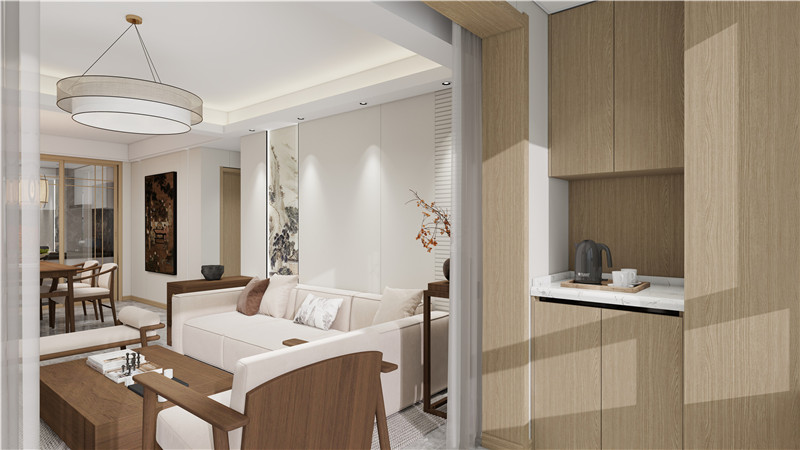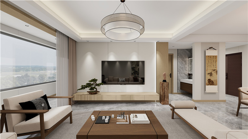 走進(jìn)這套新中式風(fēng)格的客廳,你會(huì)立刻被其獨(dú)特的韻味所吸引。海創(chuàng)的設(shè)計(jì)師巧妙地將傳統(tǒng)中式元素與現(xiàn)代生活需求相結(jié)合,創(chuàng)造出既有文化底蘊(yùn)又不失時(shí)尚感的空間。