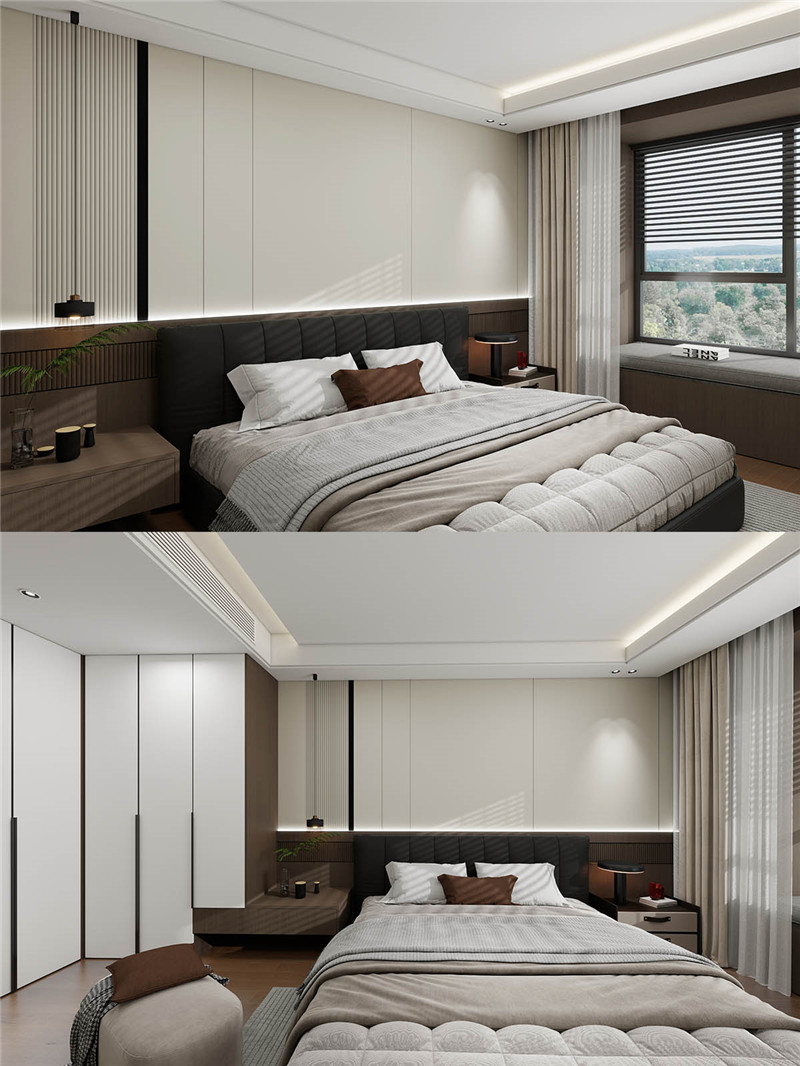 臥室|飄窗主臥+墻柜次臥,靜謐治愈