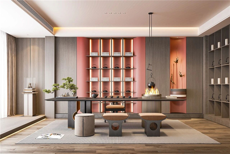 新中式×意式極簡,剛?cè)岵睦硐爰摇?/p>海創(chuàng)頂墻門柜,以全屋一體化設計,打破空間界限。從頂面到墻面,從門到柜,全案落地,省心省力。一室之內(nèi),新中式的雅致與意式極簡的利落從容切換,盡顯品位與格調(diào)。開放式客餐廳:動靜之間,風格交融客廳新中式:長條電視背景墻,上下鏤空半懸浮造型,山水3D打印畫襯底,黑白碰撞間,電視完美嵌入定制柜,大氣雅致。沙發(fā)背景:打印畫與格柵小面積穿插,精致點綴,提升空間層次感。餐廳意式極簡:島臺式設計搭配通頂餐邊柜,墻柜一體,用餐體驗更顯流暢高級。開放式廚房:轉(zhuǎn)角布局,磁吸軌道+無主燈設計,簡約利落,動線自如。私享空間:各具特色,舒適至上主臥:3D打印畫穿插做上下分割,奶白色調(diào)搭配光影燈帶,柔和敞亮,溫馨入眠。次臥:簡約新中床頭背景,一門到頂定制柜延伸為床頭柜,小空間也能舒適從容。客房:格柵拼接背景,簡約不失創(chuàng)意,待客之道自有格調(diào)。休閑活動室:靜音舒適,年味更濃過年邀友相聚,麻將聲聲,靜音設計加持,舒適又自在,歡聚時光更盡興。more +