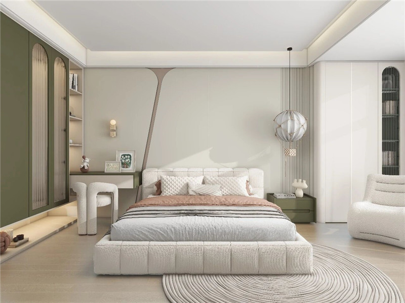 全屋定制,從入戶開始玄關(guān)與餐廳淺交相接,過渡自然。餐邊柜內(nèi)嵌冰箱,折邊設計,藝術(shù)流暢,更釋放空間。廚房雖小,極簡布局,功能齊備??筒蛷d一體,光影與藝術(shù)共生開放式設計,頂部下沉蜂窩大板頂+磁吸燈,光影暗藏,層次分明。電視背景墻半懸浮吊掛,搭配生態(tài)定制柜,半開放設計,生活與藝術(shù)相融。沙發(fā)背景相向而立,轉(zhuǎn)角延伸,同色配套,高級感渾然天成。大陽臺貫通,洗曬收納一體化定制柜與智能電動晾衣架巧妙搭配,洗曬收納一應俱全,空間利用率最大化。臥室回歸極簡,高級藏在細節(jié)里床頭背景墻拼色設計,溫柔中蘊藏高級感。床尾一門到頂通排定制柜,融入梳妝臺,打破傳統(tǒng)衣柜布局,空間更顯開闊。一站式裝修,省心更省力從玄關(guān)到臥室,從定制柜到智能家居,海創(chuàng)頂墻門柜以全屋定制為核心,一體化設計,一站式交付,讓家不僅美得統(tǒng)一,更住得舒心。more +03月